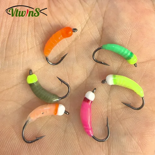 Vtwins 4 Pesca en hielo cabeza luminosa de cuentas de latón ninfa insecto gusano mosca Caddis larva insectos cebos de hundimiento rápido señuelos de trucha Pesca | Aliexpress