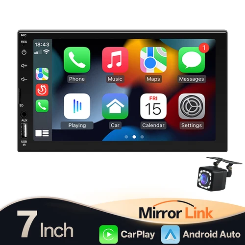 Hippcron 7 ""Radio de coche 2Din reproductor Multimedia MP5 con cable Carplay Android AutoTouch pantalla FM AUX entrada Bluetooth soporte cámara | Aliexpress
