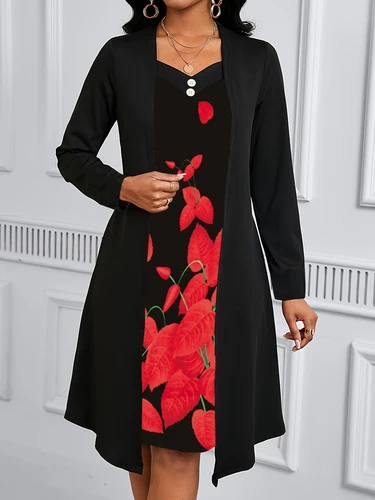 2025 Conjunto de dos piezas falso con estampado Digital, nuevo estilo europeo y americano, vestido de manga larga para otoño e invierno | Aliexpress