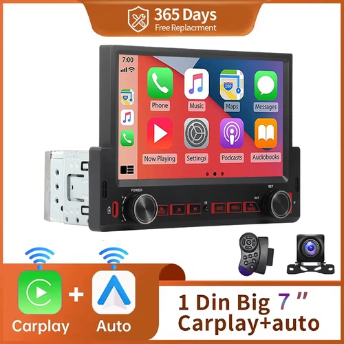 Radio estéreo de un solo Din para coche de 7 pulgadas con Apple Carplay y Android Auto Bluetooth Audio para coche 1 Din Mp5 reproductor de coche Radio FM | Aliexpress