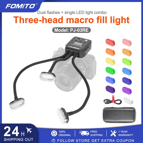 FOMITO Mini Macro Flash Difusor de tres cabezales 8 niveles de brillo Luz LED ajustable Ayuda de enfoque Batería de litio incorporada | Aliexpress