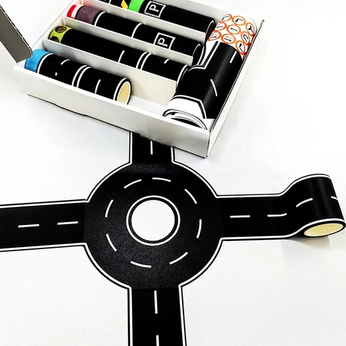 28 rollos + 9 pegatinas de escena de juego de tráfico, 118,1 pulgadas, bricolaje, diseño de tránsito ferroviario, cinta de papel, pegatinas para manual de estudiantes, juguetes para niños | Aliexpress