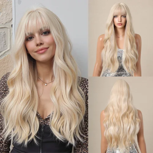 Peluca sintética HENRY MARGU Rubio degradado, peluca larga ondulada con flequillo para mujer, uso diario para fiestas y bodas, fibra de alta temperatura | Aliexpress