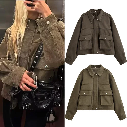 NERHEFZ, cazadora informal de gamuza para mujer, solapa holgada con cremallera, bolsillos de manga larga, abrigos para mujer, prendas de vestir para ir al trabajo de otoño 2025 | Aliexpress