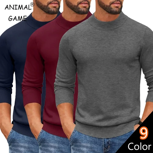 Juego de animales para hombre, blusa fría de cuello alto simulada, Jersey de punto, suéter informal, vestido ajustado, suéter cálido, ropa de calle térmica | Aliexpress
