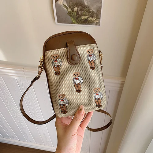 Bolso bordado de lona para teléfono móvil con oso para mujer, bolso cruzado de gran capacidad con compartimentos | Aliexpress