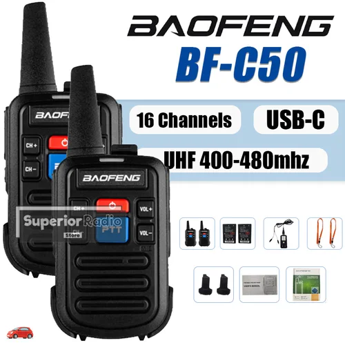 2/4 Uds Baofeng BF-C50 Mini Walkie Talkie UHF 400-480mhz tipo C carga 16 canales para regalo de niños Radioaficionado portátil Comunicador | Aliexpress