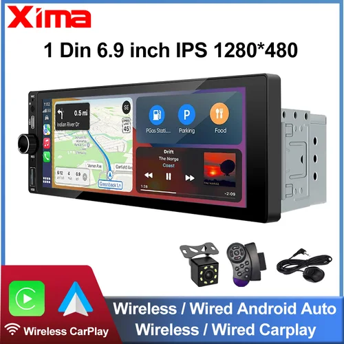 XIMA 6,9 pulgadas Radio de coche inalámbrico CarPlay Android Auto MP5 Bluetooth FM USB IPS pantalla táctil reproductor Multimedia Universal 1Din | Aliexpress