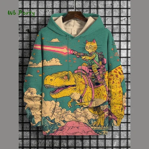 Sudaderas con capucha para hombre y mujer, sudadera con estampado 3D de arte de dinosaurio y gato divertido, chándal informal de gran tamaño, abrigo Y2k de calle, 2026 | Aliexpress