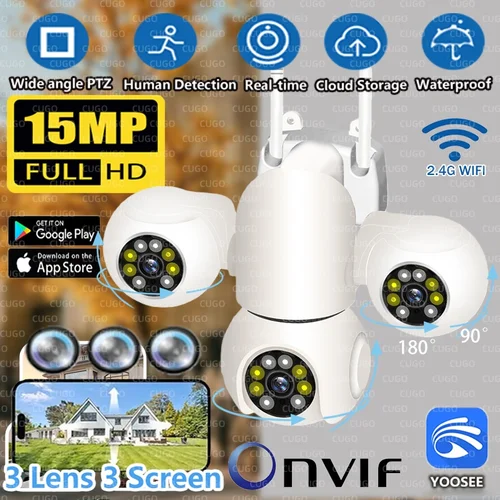 Cámara IP Wifi de 15MP y 8K, cámara impermeable para exteriores con tres pantallas y tres lentes, Onvif PTZ, seguimiento automático, vídeo CCTV, seguridad YOOSEE | Aliexpress