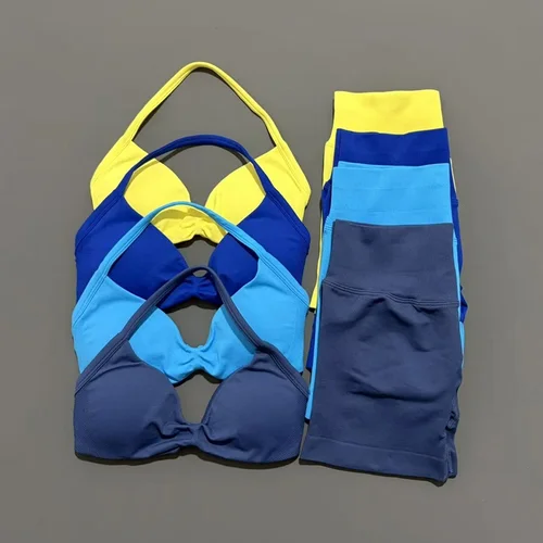 Conjunto de gimnasio y Yoga de 2 piezas para mujer, sujetador de Yoga con tiras sin costuras, Top de cintura alta, pantalones cortos de entrenamiento, conjunto deportivo, ropa deportiva | Aliexpress