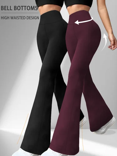 Paquete de 2 pantalones acampanados súper suaves para mujer, cintura alta, Control de barriga, entrenamiento, Yoga, gimnasio, Fitness, mallas largas, pantalones acampanados, ropa informal | Aliexpress