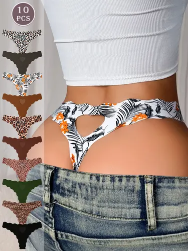 Tanga de mujer con estampado de leopardo sexy de 10 piezas, moderna y adecuada para todas las estaciones | Aliexpress
