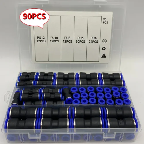 Kit de ajuste de manguera de aire de conexión rápida universal de 90 piezas para tubos de 4/6/8/10/12 mm - Conectores push-on de plástico con accesorios de manguera estilo tapa de desconexión rápida | Aliexpress