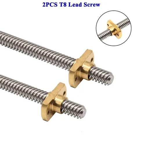2 uds T8 tornillo de avance Tr8 plomo 2mm 4mm 8mm 304 Ender-3 de acero inoxidable varilla del eje Z con tuerca de latón para impresora 3D 100-600mm | Aliexpress