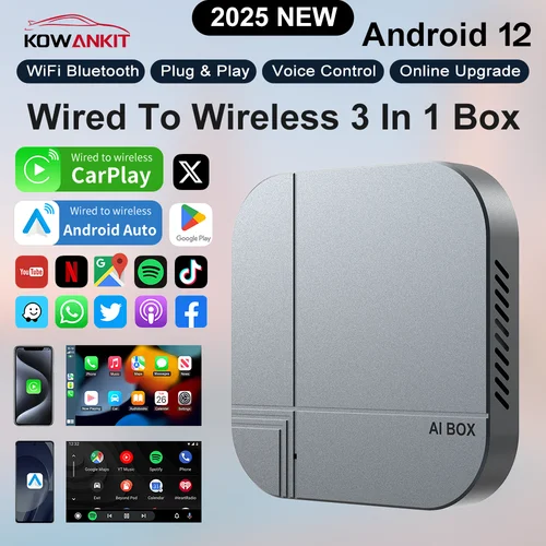 Kowankit 2026 Android 12, Caja Inalámbrica Carplay con Android Auto 3 en 1, TV Box 4+32G Wifi6 BT, Plug & Play, Compatible con Autos desde 2016 | Aliexpress