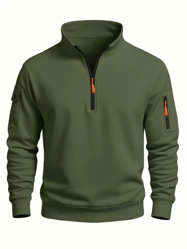 Sudadera para hombre 2025 Otoño e Invierno nuevos deportes casuales casual manga larga cuello alto media cremallera top a prueba de viento | Aliexpress
