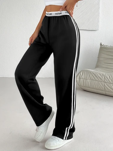 Pantalones deportivos de pierna ancha con rayas laterales - Pantalones casuales con cintura con estampado ""CULTURE"" para mujer | Aliexpress