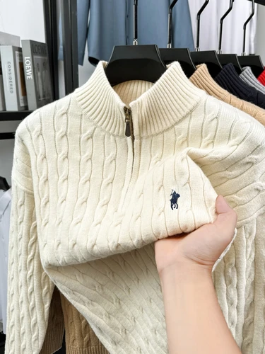 Suéter de marca de diseñador con bordado de poni de lujo para hombre Jersey de punto informal de Jacquard Paul con media cremallera y cuello levantado | Aliexpress