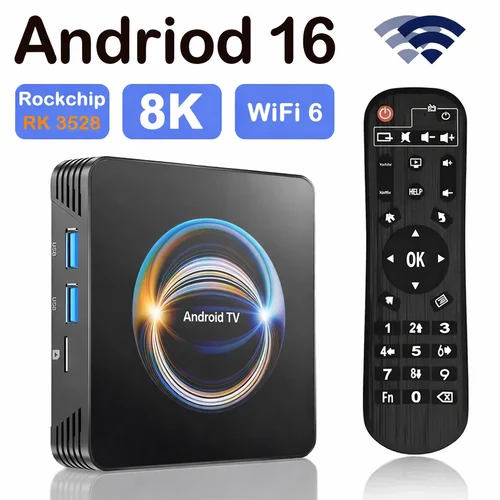 Smart TV Box Android 16 con Reproductor de Streaming 8K HDR10, WiFi de Doble Banda, Bluetooth, Control Remoto, IPTV y Reproductor Multimedia | Aliexpress