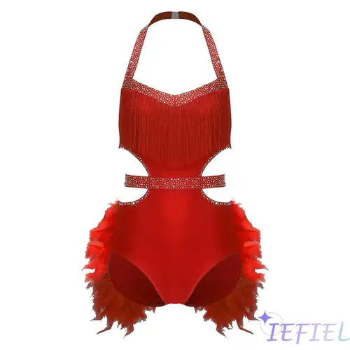 Body de baile latino Rumba Samba para mujer, mono de leotardo sin mangas con detalles de plumas de imitación y espalda descubierta para baile de Tango español | Aliexpress