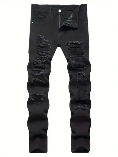 Una sola pieza de ropa de calle moderna: jeans de mezclilla rasgados de corte recto en negro. | Aliexpress