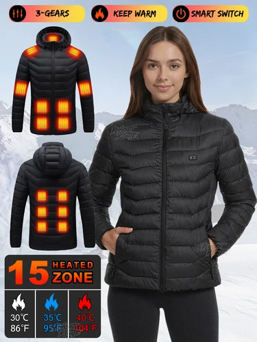 [Chaqueta calefactora inteligente para mujer] Zona calefactora 15/9/2, 2 interruptores, 3 opciones de temperatura, para actividades en invierno en interiores y exteriores | Aliexpress