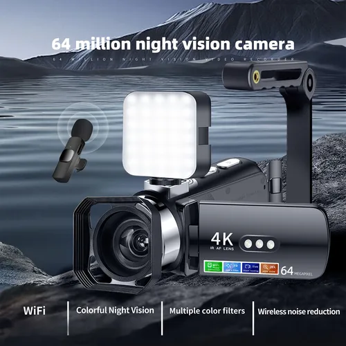Cámara de vídeo digital Cámara de vídeo con zoom digital 28X Pantalla de 3 pulgadas Enfoque automático 4K 64MP HD con luz LED blanca para bodas | Aliexpress