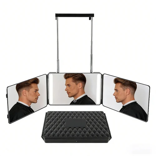 3 vías 360 ° Espejo LED para corte de pelo, diseño de gancho para colgar en la puerta, portátil para maquillaje de corte automático, tocador iluminado apto para viajes | Aliexpress