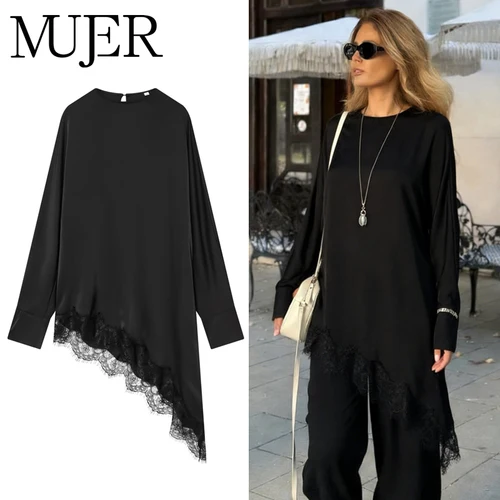 MUJER, camisas y blusas largas de encaje para mujer, blusa asimétrica para mujer, ropa de calle, blusas informales para mujer, Tops Vintage para mujer 2026 | Aliexpress