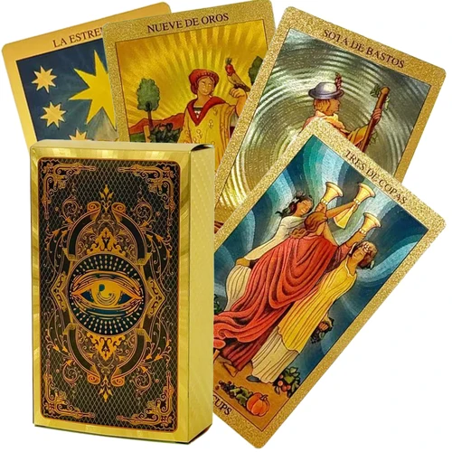 Baraja de Tarot dorado, versión española e inglesa, guía de papel en 2 idiomas, 12x7cm, 78 cartas clásicas de taro, juegos de cartas, más de 14 | Aliexpress