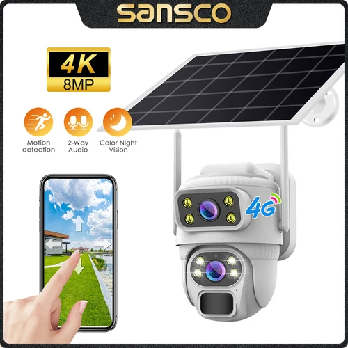 Cámara Solar SANSCO 4K 8MP 4G con Doble Lente, WIFI, Pantalla Dual, Batería, Detección de Movimiento PIR, Cámara IP de Seguridad PTZ 2K para Exteriores V380 PRO | Aliexpress