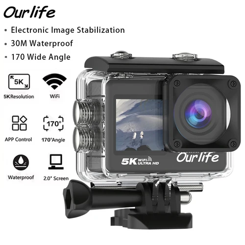 Cámara de Acción Ourlife MTR60 con Pantalla Táctil de 2.0'' y EIS 170 ° Cámara Web 30M Resistente al Agua con Zoom 5X, Cámara Deportiva WiFi 5K con Control Remoto | Aliexpress