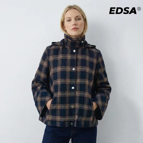 Chaqueta con capucha a cuadros para mujer EDSA, manga larga, cuello alto, abrigo de primavera y otoño, ropa de abrigo | Aliexpress