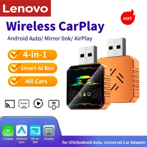 Lenovo Caja Inalámbrica 4 en 1 para Android CarPlay, Duplica la Pantalla del Móvil al Estéreo del Auto para iOS/Android Auto, Adaptador Universal para Auto Android iOS | Aliexpress