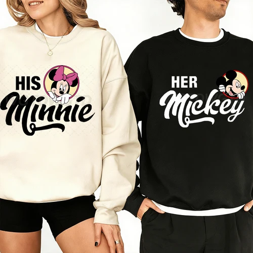 Sudadera a juego para parejas, diseño de Mickey y Minnie, para hombre y mujer, cuello redondo, ropa deportiva, regalo para amantes de la luna de miel | Aliexpress