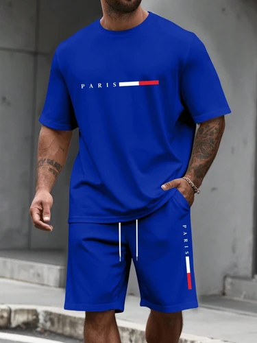 Conjunto de Dos Piezas para Hombre con Estampado de Letras de París, Primavera y Verano, Camiseta Casual de Cuello Redondo y Manga Corta, Pantalones Cortos Deportivos, Ropa con Estampado | Aliexpress