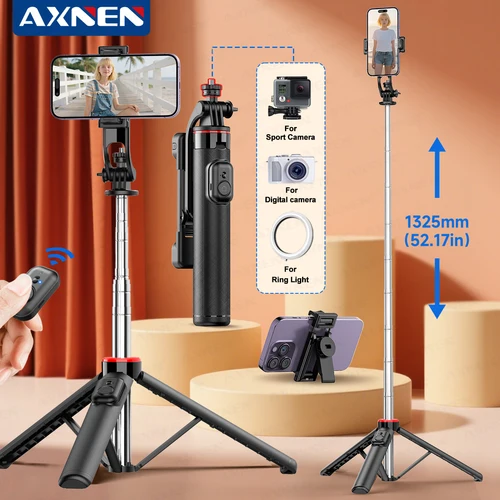 Trípode para selfies C13C13D con luz de relleno, control remoto Bluetooth, interfaz de rosca 1/4 para teléfono móvil, cámara de acción Gopro | Aliexpress