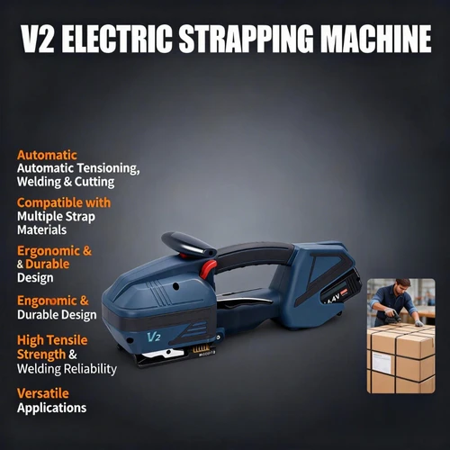 Máquina flejadora eléctrica V2 a batería, herramienta de flejado automático para bandas de PET y PP, soldadora y tensora de embalaje a batería. | Aliexpress