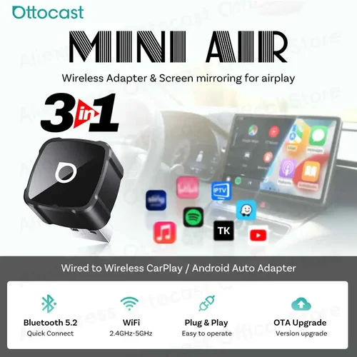 Adaptador OTTOCAST 3 en 1 MINI AIR 4.0 Cube Dongle 2026 Inalámbrico CarPlay Android Auto para Duplicación de Pantalla iOS, Accesorios para Auto | Aliexpress