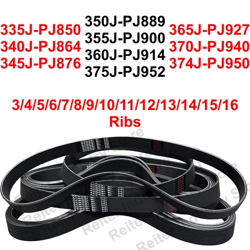 Correa transportadora de caucho 335J 340J 345J 350J 355J 360J 365J 370J 374J 375J, correa de transmisión para máquina de cinta de correr, 3/4/5/6/7/8/9/10 nervaduras | Aliexpress