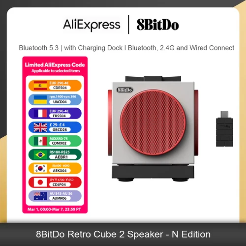 Altavoz Bluetooth Inalámbrico 8BitDo Retro Cube 2 con Base de Carga, Sonido Estéreo Real para Teclado y Ratón 8BitDo N Edition | Aliexpress