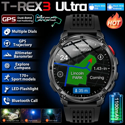 Nuevo Reloj Inteligente T-Rex3 Pro 2026 con Batería de 1100 mAh, GPS, Resistente al Agua 5ATM, Rastreador Deportivo, Brújula, Reloj Inteligente Militar para Exteriores | Aliexpress