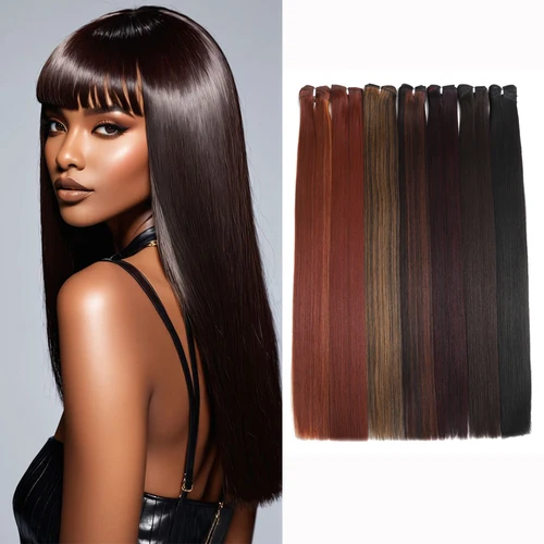 Extensiones de Cabello Sintético de 26 Pulgadas, 100g, Cabello Liso, Color Ombre Marrón Oscuro, Fibra Resistente al Calor, Cabello Suave para Tejer, para Salón | Aliexpress