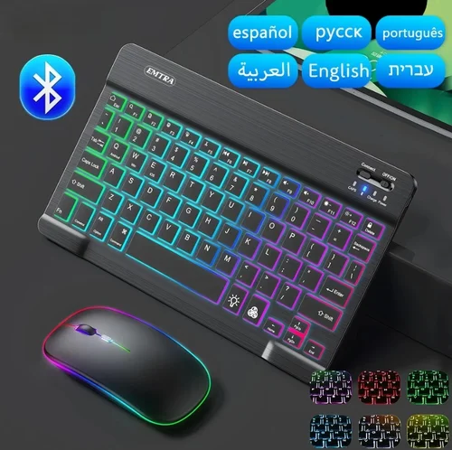 Teclado y ratón Bluetooth retroiluminados de 10 pulgadas para IOS, Android, Windows, iPad, teclado portugués, teclado español y ratón | Aliexpress