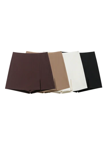 Falda pantalón de cintura alta para mujer con abertura frontal y cremallera lateral, pantalón corto de moda de color liso, falda pantalón de cintura alta para mujer | Aliexpress