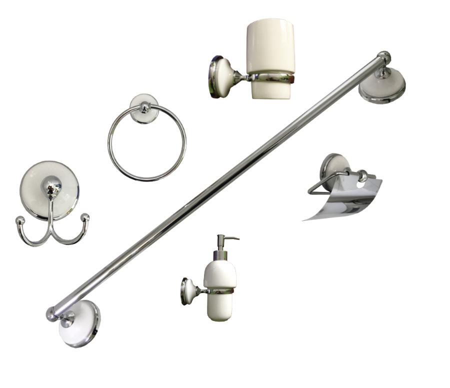 Accesorios De Baño Cromados Y Combinados Con Blanco Cerámico 6 Piezas | Dimarsa