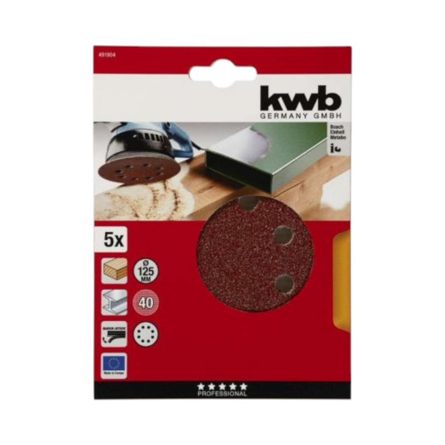 Set Disco Lija 125 mm Gr 40 Kwb 49491904 5 Piezas | Dimarsa