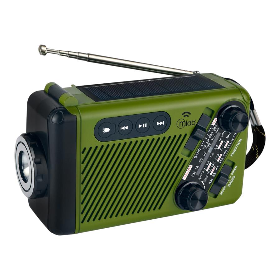 Radio Portatil Dinamo Y Solar Recargable Linterna Mlab 9584 Verde Musgo