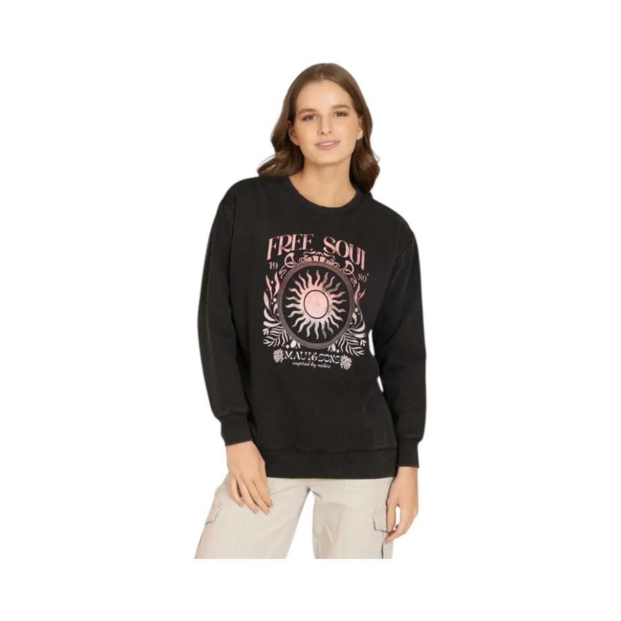 Polerón Cuello Redondo Mujer Maui & Sons Wave Bloom Negro | Dimarsa